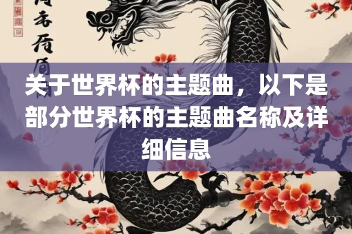 关于世界杯的主题曲,以下是部分世界杯的主题曲名称及详细信息