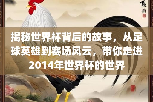 摘要:本文将带你走进2014年世界杯的世界,揭示背后不为人知的故事。从足球英雄到赛场风云,感受赛场上的激情与荣耀。一起领略世界杯的魅力,体验足球带来的激情与热血。跟随本文,你将深入了解世界杯背后的故事,感受足球的力量和荣耀。