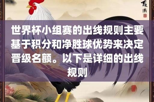 世界杯小组赛的出线规则主要基于积分和净胜球优势来决定晋级名额。以下是详细的出线规则